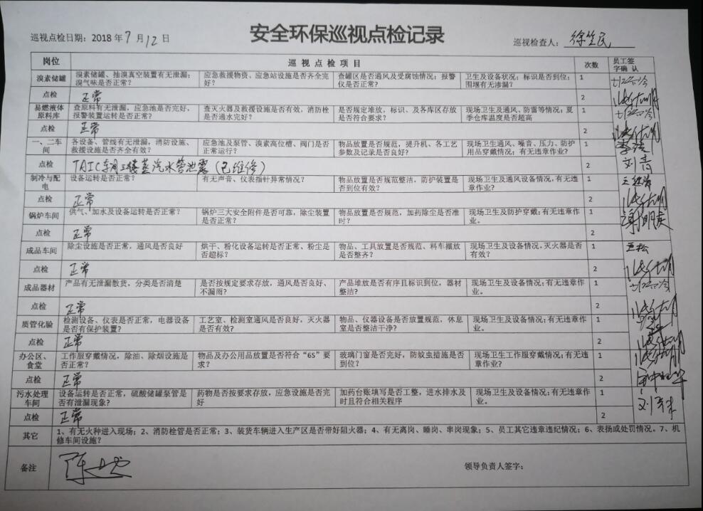 安全環(huán)保巡視點(diǎn)檢記錄及六月安全大檢查隱患整改表